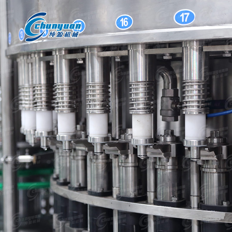 三合一純凈水灌裝機采用卡瓶頸傳動技術,實現全自動沖瓶、灌裝、旋蓋等工序,其自動化程度高;該純凈水灌裝設備的大部分電氣系統零件均采用國內外高質量產品,灌裝機與液體接觸的零件全部采用優質不銹鋼材料,具有耐磨、穩定、故障率低等特點。