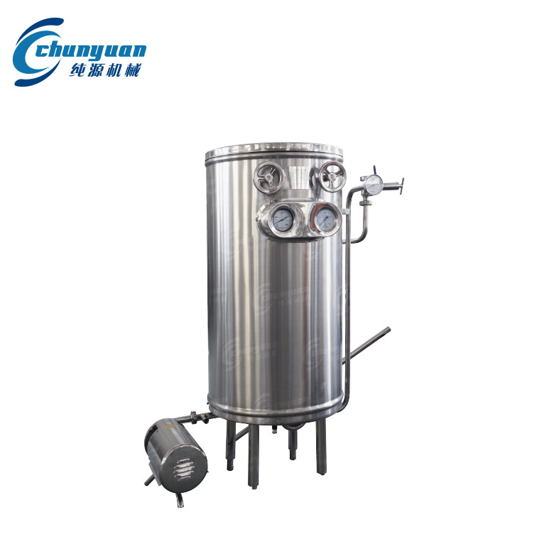 超高溫瞬時滅菌器一般物料由離心泵泵入滅菌機中冷熱料熱交換裝置中而得到預熱,再經過充滿高壓的高溫桶,物料被迅速加熱到殺菌溫度并在此前后保持約6秒,其中的微生物及酶類很快被殺滅。物料出高溫桶后通過與冷卻水的熱交換獲得冷卻,一般溫度低于65℃。如果下道工序需要提高溫度則可通過調節角式截止閥或循環等途徑達到要求,出料溫度85℃,反之則通過接入冷卻水來降低出料溫度。出料通過節流閥控制,此閥能使在維持一定壓力下物料的沸點高于高溫度。正常生產時調節此閥,由泵的推動力克服彈簧壓力而產生背壓控制流量,在清洗滅菌機時則應全部開啟。循環貯槽可用來配制酸堿溶液,對盤管內壁積垢進行有效清洗。由于同時采用不銹鋼三通旋塞,流量可以得到適當調節。