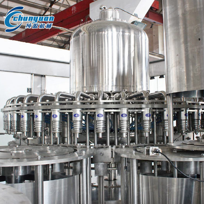 純源機械專業供應果汁果粒、橙汁、果肉、水果汁、葡萄汁等果汁飲料灌裝機械。其果汁飲料灌裝機灌裝快、穩、準,設有完善的物料回流系統。