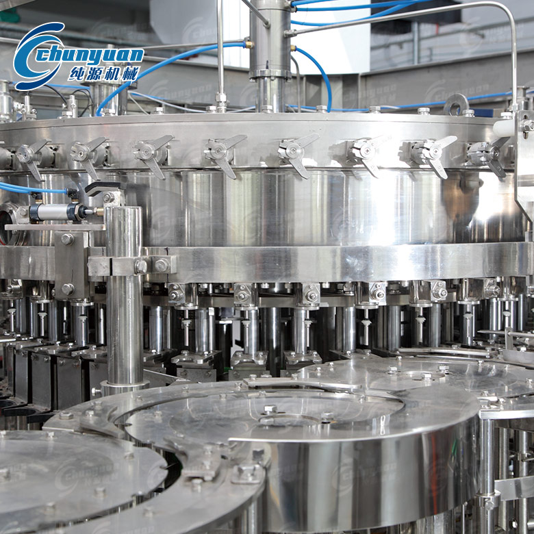 碳酸飲料機械是我國引進德國技術,運用等壓灌裝原理自行設計制造,實現將液體灌裝到由沖瓶機送過來的洗好的瓶子中。