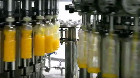 純源機械廠家專業提供4.5L-9L果汁灌裝生產線視頻。果汁灌裝機適用于耐高溫聚脂瓶灌裝果汁飲料、果茶飲料等。系列果汁灌