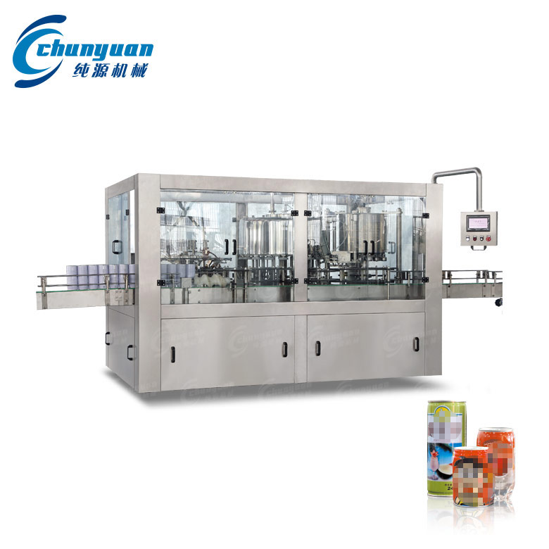 純源機械廠家制造供應的易拉罐椰子汁飲料機械適用于灌裝椰子汁、果汁、茶飲料、功能性飲料等不含氣飲料的易拉罐灌裝。易拉罐飲料機械的生產能力為4000-36000灌每小時。